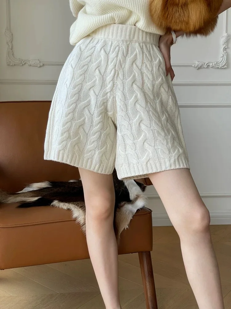 Ladies Fashion style soft and comfortable plain twisted knitted Girls knit pant for spring winter cashmere shorts for women